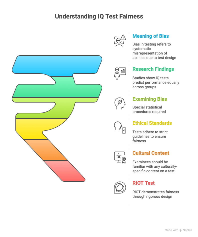 For more than half a century, psychologists have studied the fairness of intelligence tests across racial and cultural groups. Research often shows that professionally developed tests predict academic and occupational performance with equal accuracy for all major populations. If the tests were biased against any group, this would not be true. When individuals achieve the same IQ score, they tend to perform similarly in education and work, regardless of which racial or demographic group they belong to.