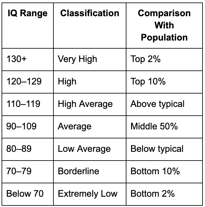 The Standard IQ Score Range and Classifications