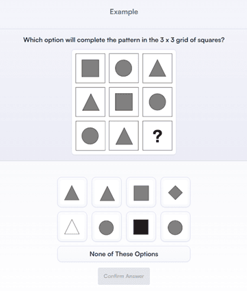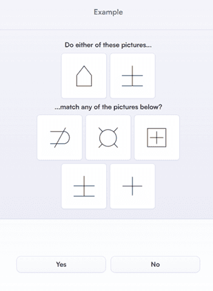 On the Abstract Matching subtest, there is an image at the top of the screen, and the examinee selects which of two options is more similar to the first image.Â